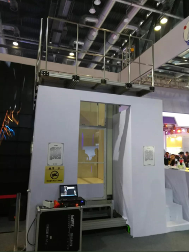 在現(xiàn)場(chǎng),高速運(yùn)動(dòng)的動(dòng)態(tài)屏幕、變化多端的墻面造型使這個(gè)位于北特圣迪展位一角的產(chǎn)品一經(jīng)亮相就成為整個(gè)展館內(nèi)的絕對(duì)主角,吸引了大批觀眾圍觀拍照。