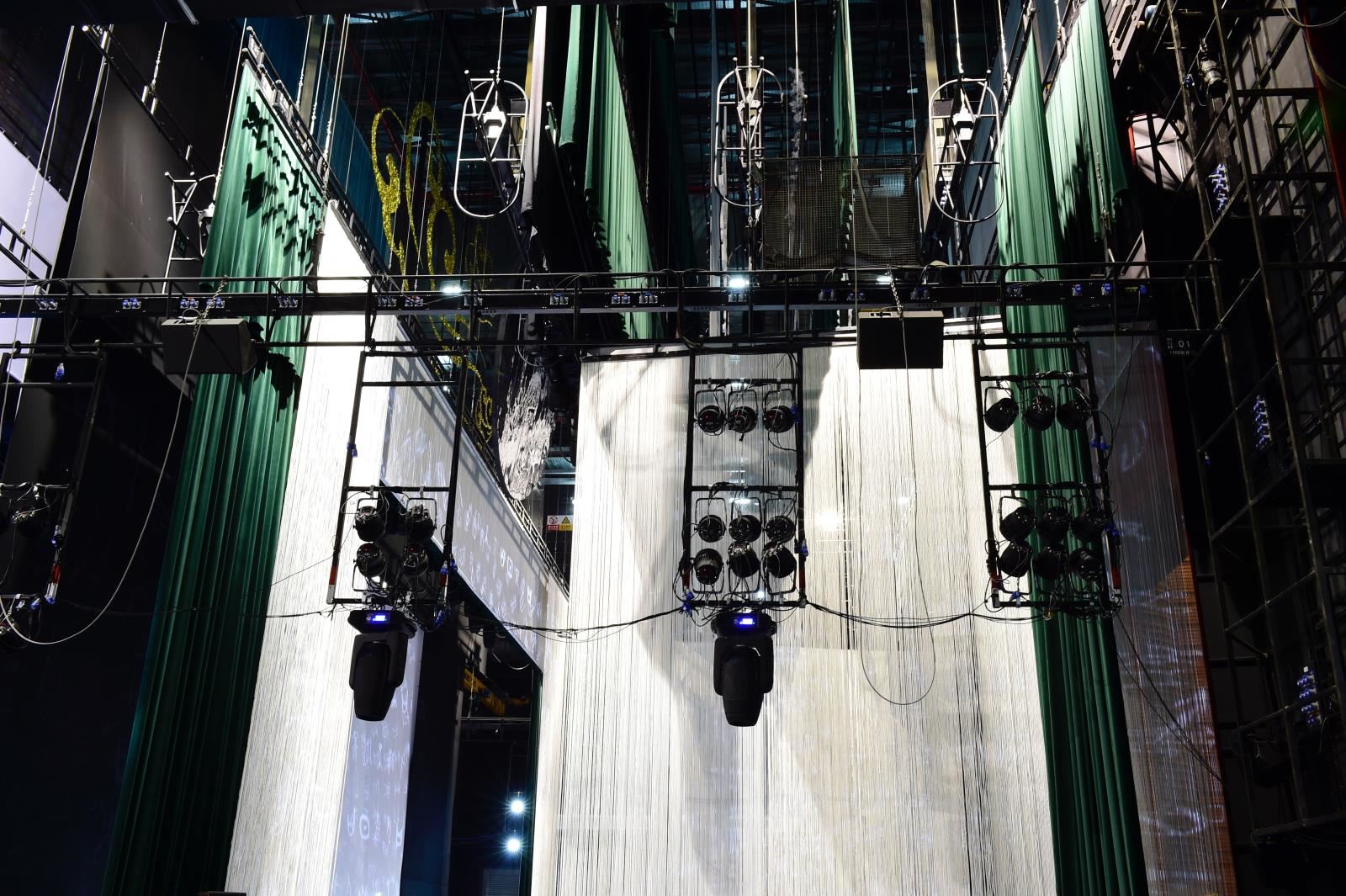 燈光吊架上配置用于燈光電纜收納的收線筐。注:燈光線槽、電纜、插頭、接線箱由燈光設(shè)備廠家完成。