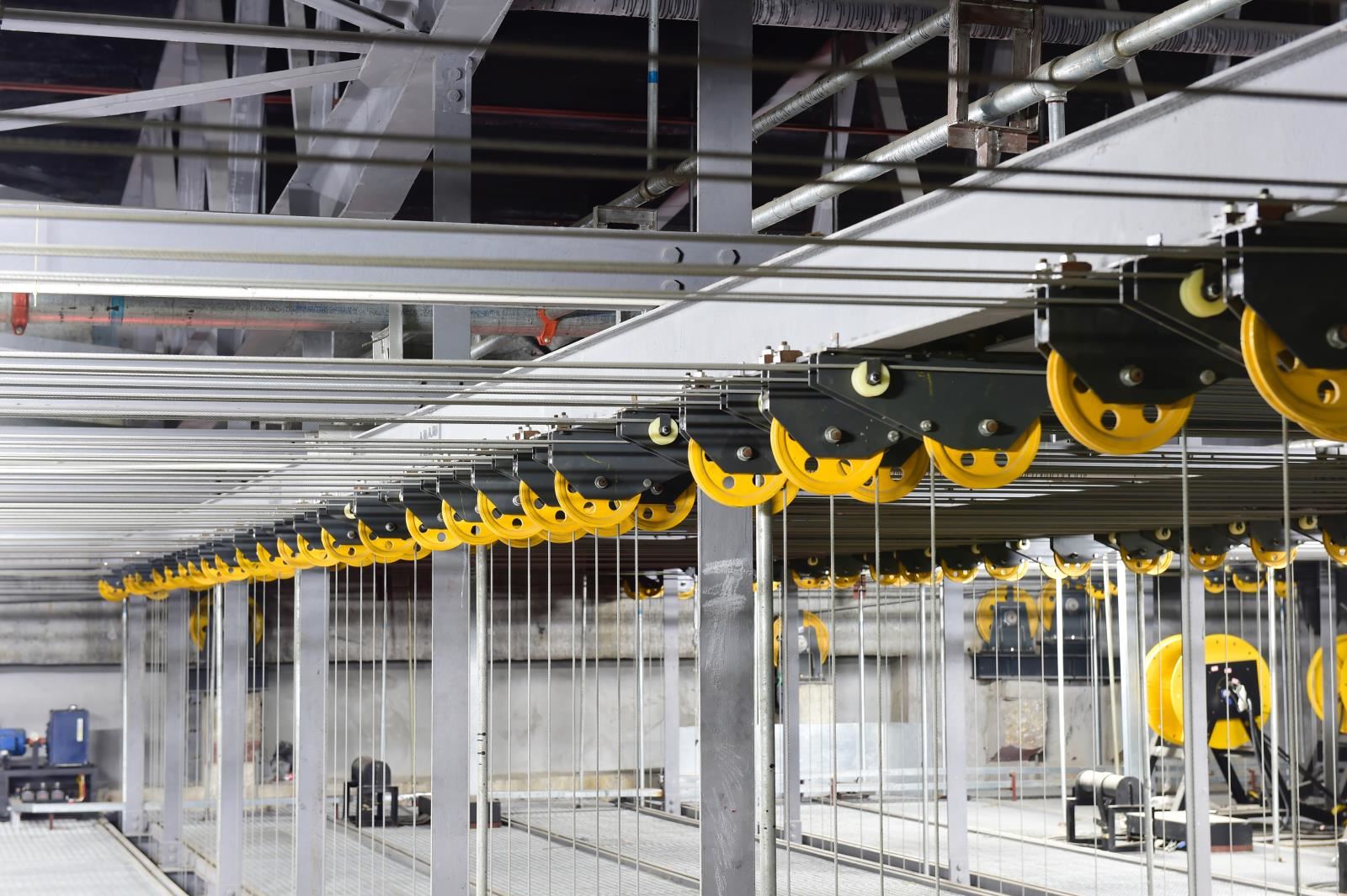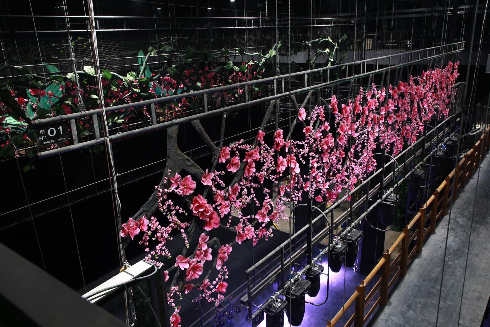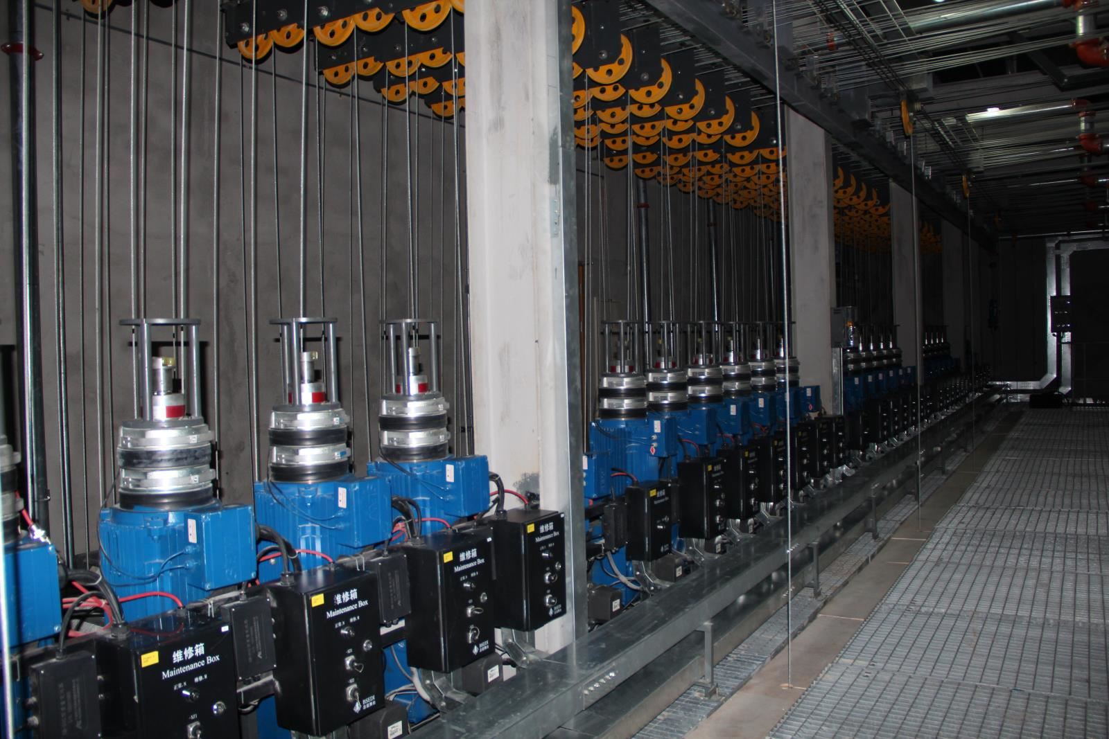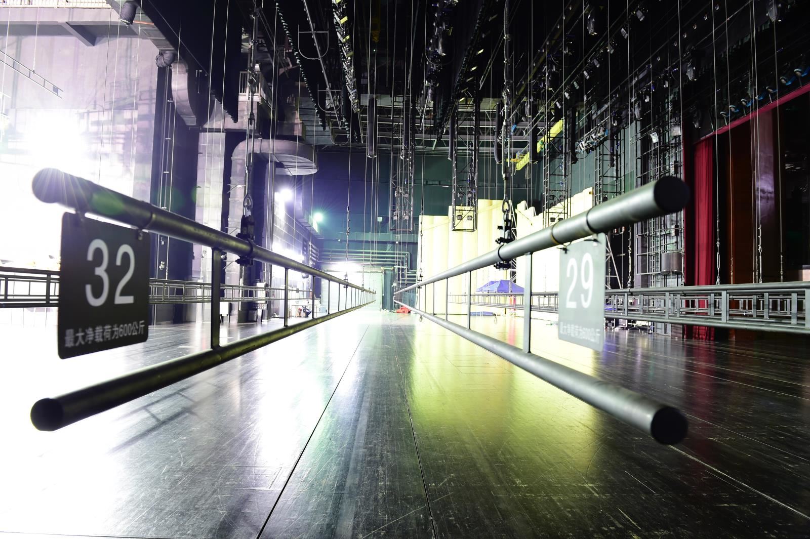設(shè)置于主舞臺(tái)或其他舞臺(tái)區(qū)域上部、可調(diào)速的電動(dòng)吊桿,用于提升布景、各種幕布等,參加演出活動(dòng);