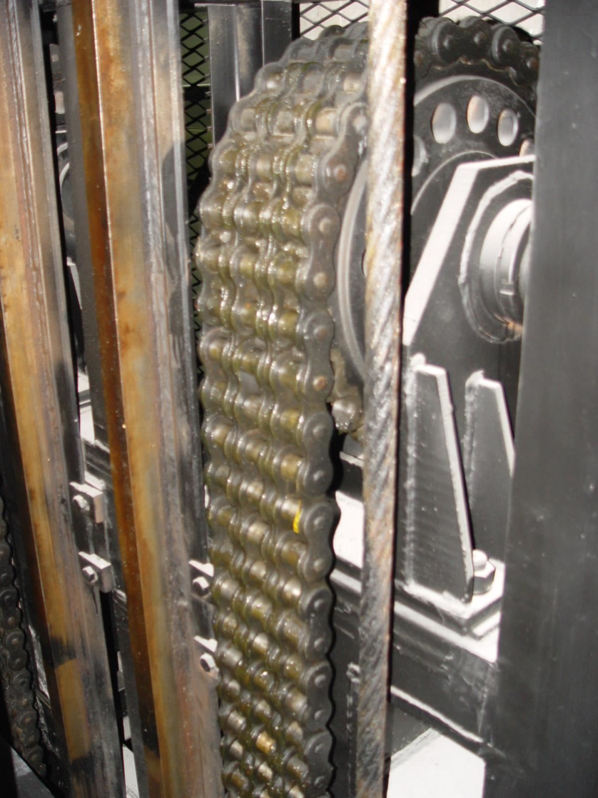 運(yùn)景升降臺(tái)的驅(qū)動(dòng)裝置一般采用鏈傳動(dòng)、鋼絲繩傳動(dòng)或鋼性鏈傳動(dòng)。