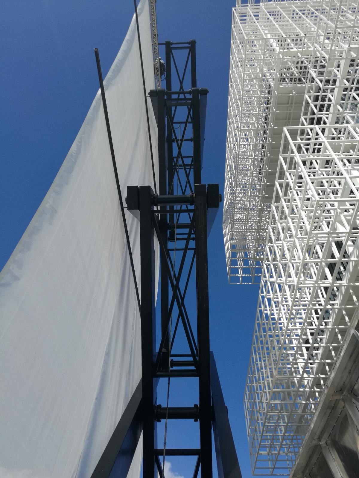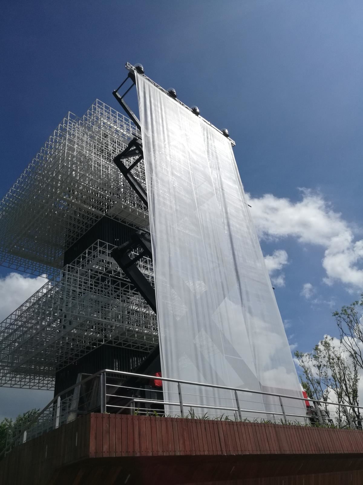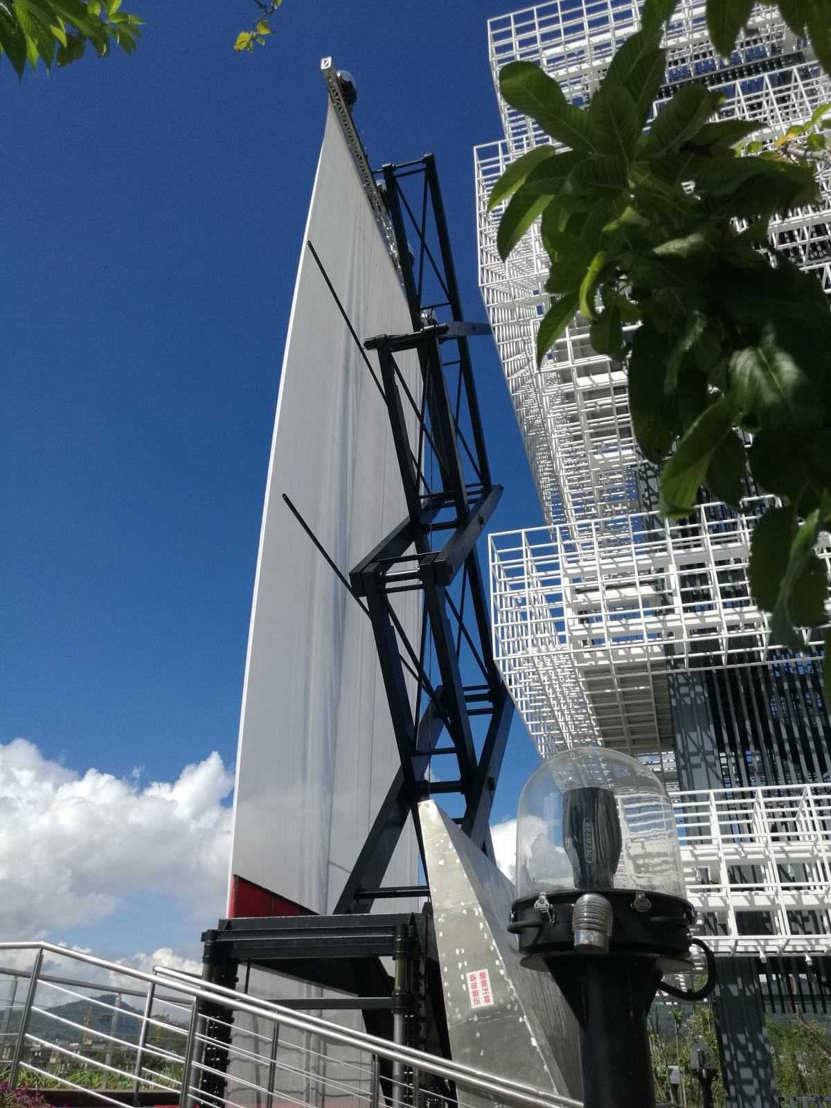 高難度淺基坑大行程無導向大型戶外升降巨型投影框架系統