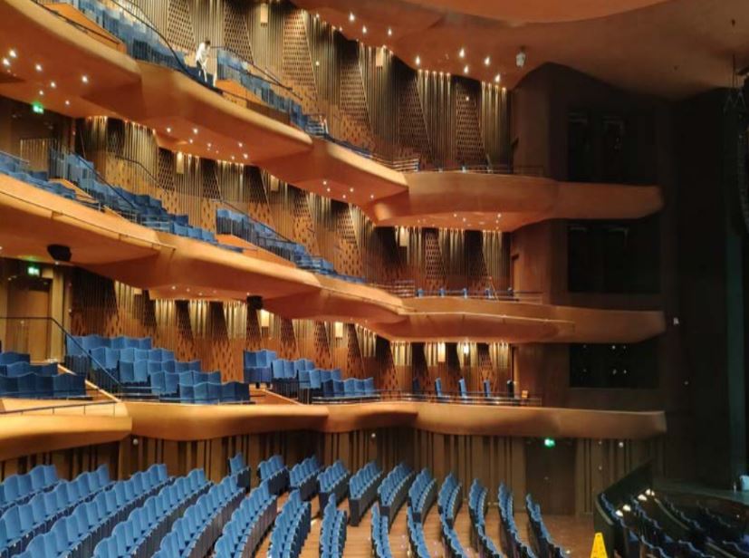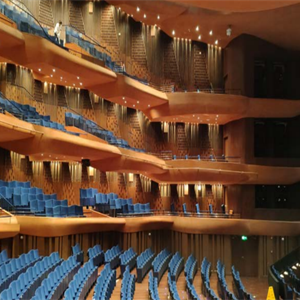 機械聲學(xué)裝置通常設(shè)置于(劇院等的)觀演區(qū)兩側(cè)、后區(qū)或頂部,是一種先進的聲學(xué)調(diào)節(jié)裝置,主要用于優(yōu)化不同演出場景下的聲學(xué)效果。通過聲學(xué)裝置的機械動作改變吸聲或反射面積,調(diào)整觀演區(qū)吸聲量,實現(xiàn)混響時間動態(tài)變化。同時具有高頻吸收特性,有效減少聲染色和回聲。